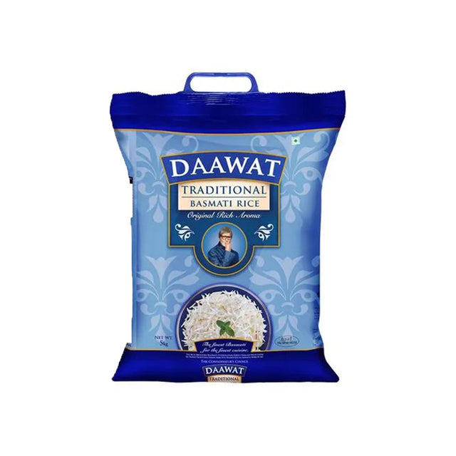 Daawat Traditional Basmati Rice combines the exquisite aroma, pristine white luster and fluffy texture of the finest Basmati into one truly heirloom grain. Aged to perfection and grown in the foothills of the Himalayas, Daawat Traditional is a unique blend of aroma and sweet taste, making it perfect for any rice dish.